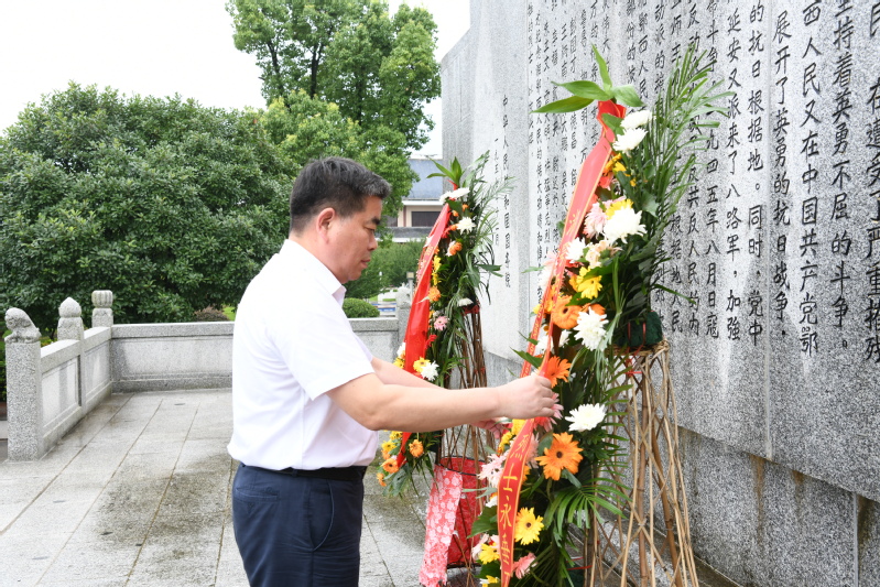 下午,与会人员来到湘鄂西苏区革命烈士陵园,向革命烈士敬献花篮,缅怀先烈,寄托哀思。全体党员面向鲜红的党旗,重温入党誓词,庄严宣誓。