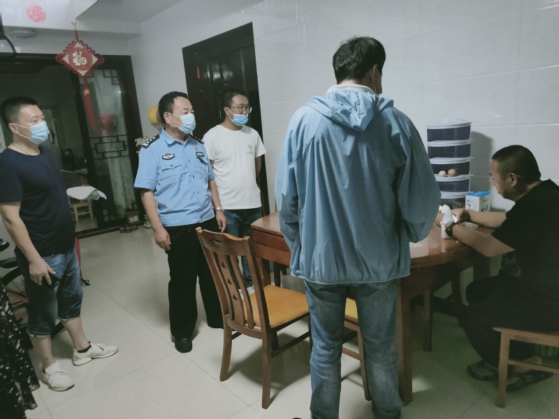 由社区工作人员、医生、民警等组成的五人小组,上门仔细排查从南京返场人员,核实相关信息,做好登记等工作,并叮嘱居民出门戴口罩,注意个人卫生等。