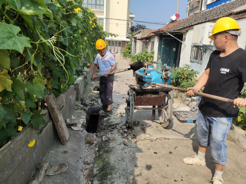 随着时间的推移,温度不断升高,要疏通的下水道长近50米,但工人们没有后退,他们赶时间、抢进度,带着闷热的安全帽,即使汗流浃背也一刻都不懈怠。施工过程中,工人们先是用力地翘起盖槽板,然后从堵塞的下水道里挖上来很多散发出恶臭、黑黢黢的淤泥,再用小车一车一车的将堵塞物运走。他们不嫌累、不嫌脏,不方便施工时便将腿跪在地上,用工具将下水道清理得干干净净。即使在作业时,本着对盖槽板等原材料保护优先的原则,只能用工具将淤泥掏出来,一定程度上加大了施工的难度,增加了施工的时间,但工人们用饱满的精神状态和辛勤的汗水,切实为居民办了一件实事。