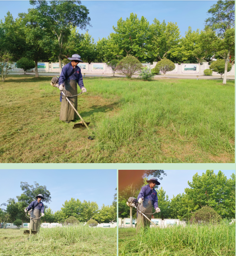“嗡嗡嗡”修剪草坪的声音吸引了大家的注意,也让大家对在骄阳下仍坚守岗位的环卫人员而敬佩。
