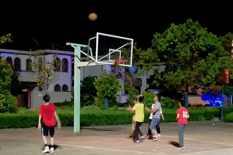 图为灯光球场上活动的孩子们