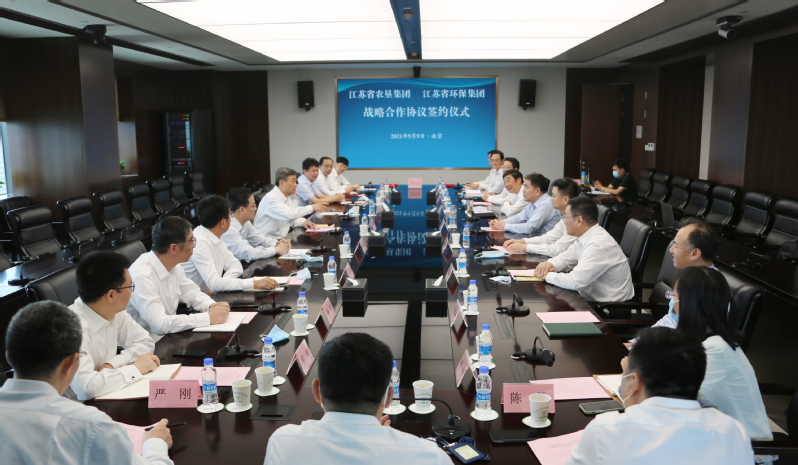 9月9日上午,集团公司与省环保集团战略合作签约仪式在苏垦大厦举行。集团公司党委书记、董事长魏红军、省环保集团党委书记、董事长方斌斌出席仪式并致辞,集团公司总经理胡兆辉主持仪式,省环保集团总经理许峰、副总经理冯旭松、集团公司副总经理姜建友、纪委书记李旭东、副总经理王立新、总法律顾问吴以国、总经理助理钱伯彬、董事会秘书孟亚平出席签约仪式。姜建友、冯旭松分别代表双方签署战略合作协议。