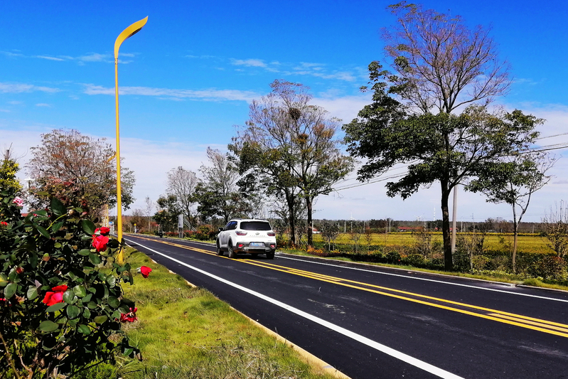场中路是射盐路(射阳县城至盐东镇)的新洋农场路段,黄沙港新洋农场大桥竣工通车后,射盐路也正式开通,这条路从射阳县合德镇为起点,先后经过新洋农场有限公司、射阳县洋马镇、盐城市亭湖区黄尖镇,终点为盐城市亭湖区盐东镇,是射阳县连接盐城市的又一通道。在集团公司的大力支持下,2020年投入六百万多元完成了公里两边绿化带工程。由于原来的水泥路狭窄,且路面损坏严重,对交通安全有一定的隐患,今年又对路面进行翻修,全部铺设沥青路面。公路的一期工程于10月11日顺利完工通车。