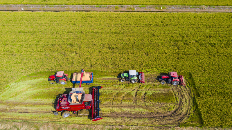 高空俯瞰,新洋的稻田格外俊俏,广大干群正抢抓晴好天气,组织人力、农机,加紧收割水稻,一台台大型联合收割机开足马力穿梭田间,所到之处,水稻尽数倒下,切割、脱粒、粉碎秸秆一气呵成,吐出的稻谷颗粒饱满,空气中弥漫着阵阵稻香,好一副醉美田园风光!