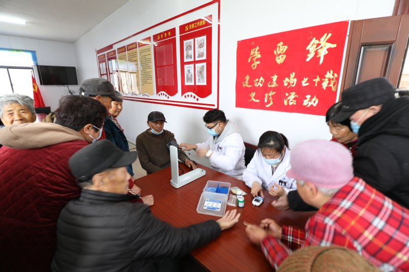医务人员在一旁为老年人测血压、测血糖、查体看病、提供专业细致的医疗咨询服务,对他们的日常用药进行了详细讲解,就慢病管理进行了悉心指导,现场充满温暖祥和的氛围。