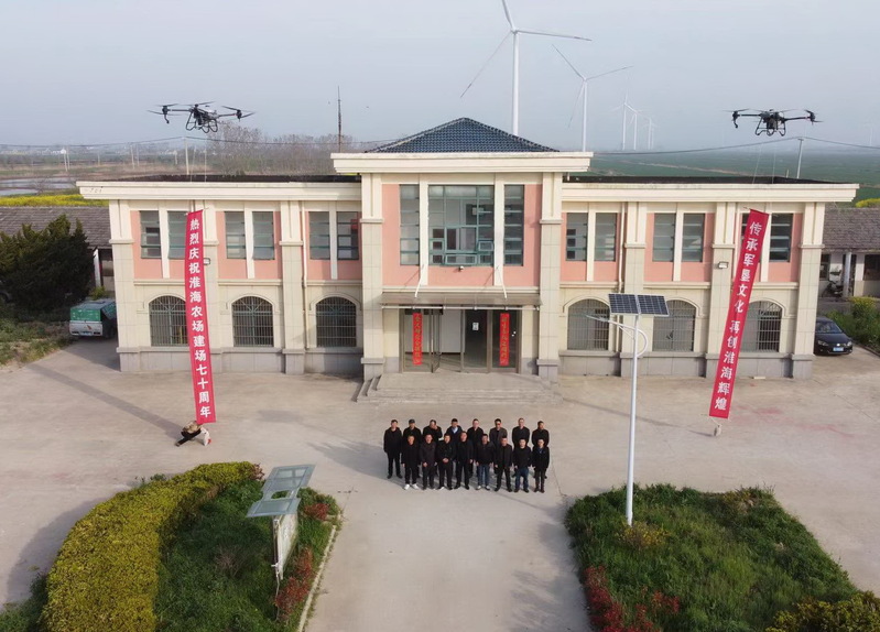为体现本单位特色,七分场社区工会决定选择日出时分和当下最先进的农田植保机大疆T40表达对农场的满腔热爱。为拍摄视频,全体工作人员于10日凌晨五点有序排列在七分场海堤上等待日出,配合音乐,全心投入录制视频,用整齐划一的口号表达了对农场的祝福。“实力淮海、创新淮海、和谐淮海、美丽淮海”,一声声响亮的口号,是七分场全体工作人员的心声,也代表着淮海人对农场深深的爱意和祝福。在接下来的工作中,他们将坚守岗位、严格履职,用实际行动确保淮海发展势头持续稳定,喜迎农场成立70周年大庆。
