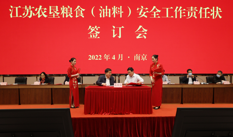 会上,魏红军代表集团公司党委,与集团公司农业发展部、苏垦农发股份公司及18家农场公司主要负责人签订了粮食(油料)安全责任状。