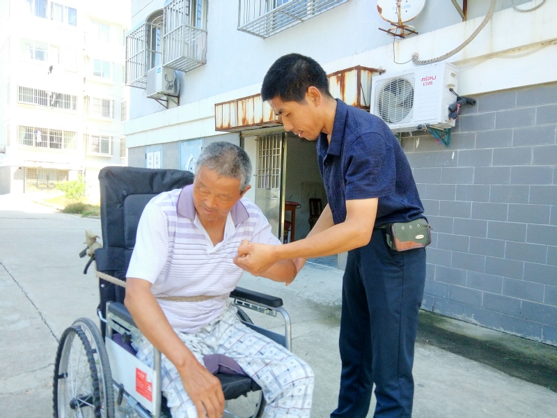 “小陈人勤快,心地也善良,他烧的饭有滋有味很好吃,特别是他还给我讲国内外许多的有趣事,现在的我虽然坐着轮椅,但小陈就是我的‘腿’,想到哪就到哪,我再也不寂寞了。”姚广成开心地说,“我虽有儿子,但这五年来,他时刻陪伴在我身边,有胜过‘儿子’般的细心,同一屋檐下住,又吃着同一锅饭,我们自然心也贴得非常得近。”