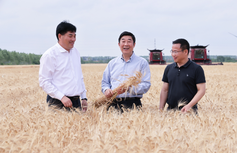 胡兆辉首先考察了大麦收割现场以及小麦、油菜长势情况,他指出,粮食安全是“国之大者”,要深刻认识国家实施粮食安全战略的重要性和必要性,切实扛起保障粮食安全“国家队”的职责使命。新洋夏熟“三大作物”大麦、小麦和油菜长势喜人、丰收在望,“丰产、丰收、增效”要素集聚、优势凸显,要抢抓当前晴好天气、借势当前利好局面,乘胜追击、稳扎稳打,在夏收、夏种、夏管等关键技术措施上下足功夫,质量并举确保夏粮颗粒归仓,精细管理力促水稻稳产高产,誓夺“三夏”工作全面胜利,为苏垦农发股份公司和集团公司作贡献。