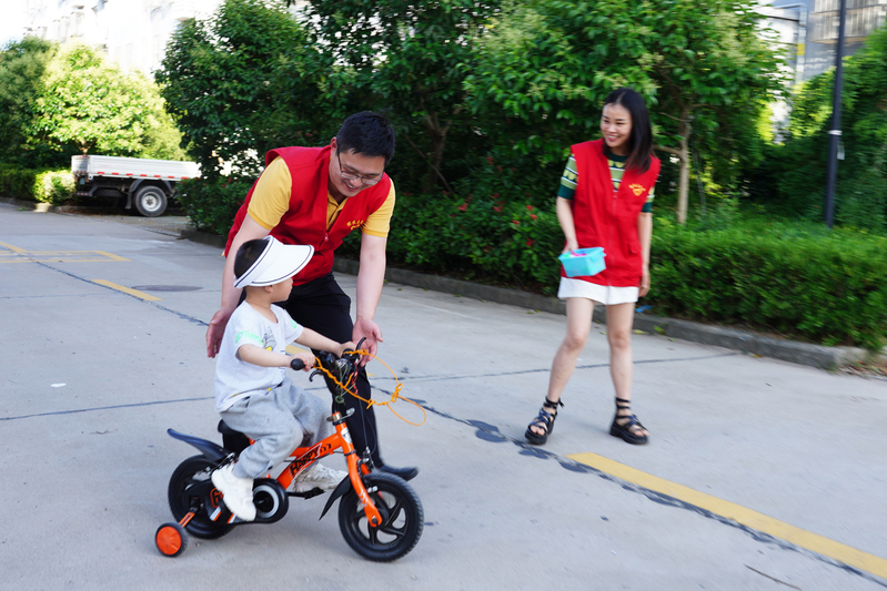 6月10日下午,弶港农场团委“爱心爸爸”“爱心妈妈”带着儿童绘本和玩具,走进困境儿童小浩浩的家里。“奥迪曼与怪兽作战斗…… ”梦想小屋的书桌前,浩浩依偎在“爱心妈妈”孙菁怀里,听着有声有色的奥特曼的故事。“别怕,勇敢地往前骑,我在身后保护你”“我们一起来比赛,看谁快”小区的空地上,在“爱心爸爸”陈海荣鼓励下,浩浩骑着儿童单车,开朗的笑声在小区里飘荡。一起玩拼图、画画、做游戏,几个小时下来,不爱说话的小浩浩从最初的羞涩生疏,到渐渐展露笑容,短暂的相聚中,与“爱心爸妈”建立了深厚的信任和感情。