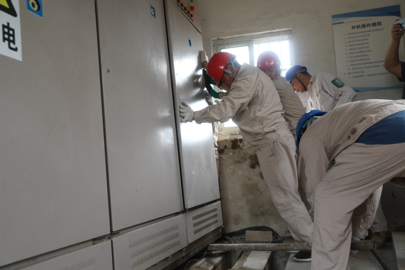 7月8日上午8点,凯惠电力宝应湖分公司6名电工来到三分场劳动排涝站,将前期维修的100KW两台泵站的开关柜复位,9点,他们驱车赶到四分场5队东南站,将沿河倾斜的电杆校正,排除安全隐患……