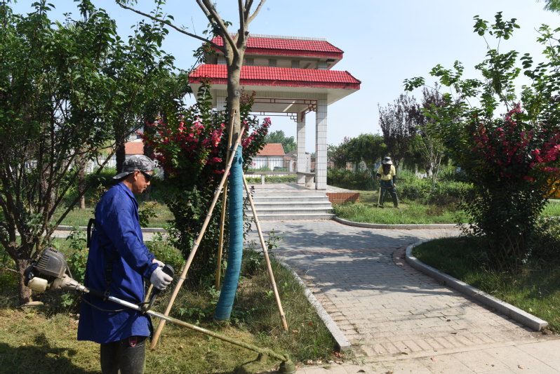 7月13日早上7时,在淮海路北侧的路边微型公园里,三名环卫职工身负割草机,伴随着隆隆的机器轰鸣声,他们就已经在忙着清理草坪了。据了解,最近他们的工作重点是修整草坪灌木绿地,维持好绿化带的整洁美观形象。“经过我们的劳动,每当看到公共绿地上的草坪被修剪得整整齐齐,就觉得一天的劳作没有白辛苦。”环卫工叶师傅在稍作休息之余时说。在与他们交谈中了解到,他们除了修剪草坪外,还有许多诸如种花栽树、剪枝除草、浇水抗旱、挖塘施肥、河道保洁、垃圾清运等工作,哪里需要哪里上,他们一直以服从指挥而为整个农场的美丽环境进行精心地维护着。“每一项工作都要有人去打理,虽然环卫工作很辛苦,但我既然选择了这一行,就得把活干好,毕竟农场美丽我光荣嘛!”叶师傅感言道。