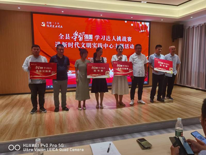 据悉,自5月15日2022江苏“学习达人”挑战赛上线以来,淮海农场公司党委高度重视,认真贯彻上级部署要求,积极谋划组织各单位开展多种形式的学习答题活动,不仅通过建立由各基层党组织联络员组成的微信群,对进群人员进行了相关培训,还以文件的形式,对每月排名靠前的“学习达人”选手进行相关的奖励,在全场职工群众中掀起了挑战答题的浓厚氛围。图为获奖后淮海的“学习达人”与县域其他单位的同志同台领奖。