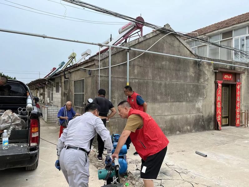 近日,室外近40度的高温扑面而来,热气令人眩晕。然而,在炎炎烈日中城南居委会党支部党员志愿者与射阳新奥燃气公司的工作人员在居民区内对天然气管道进行测压与施工,他们挥汗如雨、从不懈怠,始终坚守在自己的岗位上。面对高温炙烤和烈日的直射,党员志愿者自行购置防暑降温物资如藿香正气水、清凉油防暑等药品,以备不时之需。协调安装天然气管道各种突发的情况,为了居民安全使用上管道天然气保驾护航。