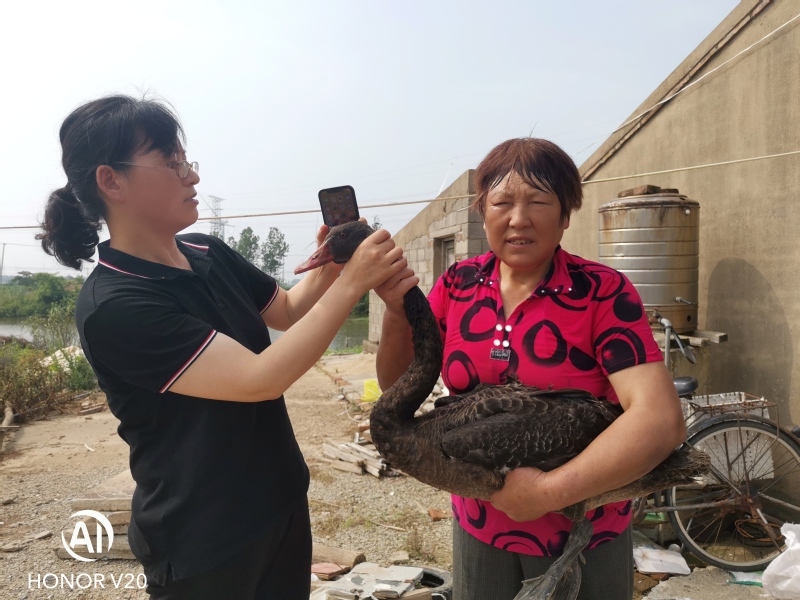 第二天,潘振海就将发现黑天鹅的情况告诉了分场干事,请他上报农场相关部门。分场干事接到信息后,立即与淮海农场社区综合管理科负责林业和畜禽养殖的王增平联系。于是王增平立即找到农场兽医站的畜禽专家朱正华一同前往。