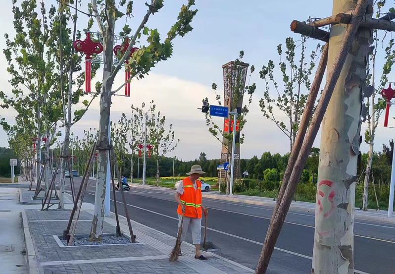 每天凌晨三四点开始,新洋环卫人便穿梭于农场主要干道和大街小巷之中进行保洁作业。露天保洁员最为辛苦,他们没有太阳伞的“遮阴避凉”,没有空调的“保驾护航”,一把扫帚、一双“火眼金睛”是他们的工作工具,他们用奉献诠释着岗位职责,用双手打造着“美丽新洋”。
