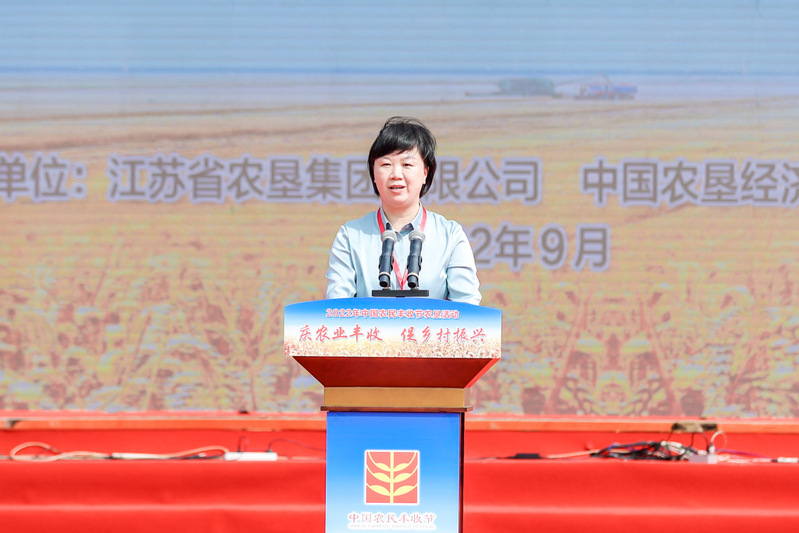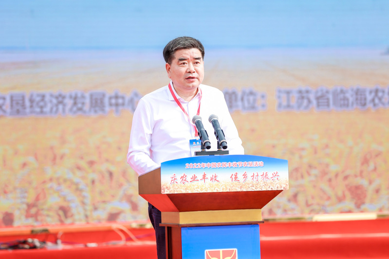 魏红军在致辞时表示,近年来,江苏农垦始终坚持“农为根本、垦为基因”,矢志不移推进农业现代化,经济强的基础更牢、产业优的特色更亮、职工富的成色更足、生态美的基调更强、农场兴的成效更显,“强优富美兴”新垦区建设硕果累累,特别是在盐城市委市政府、射阳县委县政府的关心与支持下,江苏省农垦麦芽有限公司入选2022年度江苏省省长质量奖,产品的品牌影响力不断扩大。在江苏农垦创建70周年之际,承办中国农民丰收节农垦活动意义重大,苏垦将认真贯彻落实总书记关于中国农民丰收节的重要指示精神,在农业农村部农垦局、中国农垦经济发展中心的悉心指导下,在各兄弟垦区和射阳县委县政府的大力支持下,在集团公司上下特别是临海干部职工的共同努力下,办出一届简洁、稳当、非凡的丰收节庆祝活动。