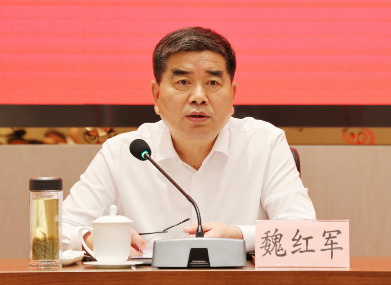 魏红军在讲话中指出,要深入学习贯彻习近平总书记对江苏工作重要讲话精神,牢牢把握“在高质量发展上继续走在前列”的总目标。习近平总书记对江苏工作寄予厚望,要求江苏在高质量发展上继续走在前列,在推进中国式现代化中走在前、做示范。无论是“四个走在前”,还是“四个新”,都对江苏农业现代化提出重大要求,为谱写“强富美高”新江苏现代化建设的农垦篇章提供了行动指南和根本遵循。要深刻认识中国式现代化的科学内涵和时代要求,深刻理解高质量发展的内在逻辑和实践要求,深刻领会农业强国建设的战略考量和总体部署。魏红军强调,要聚焦聚力推动高质量发展的关键问题,全面对标“走在前、做示范”的重大定位和“四个新”的重大任务。必须对打造现代农业航母和垦区现代化建设进行系统思考谋划、提升思路举措,在科技创新率先突破上下功夫,在加快强链补链延链上下功夫,在勇担新的文化使命上下功夫,在推进社会治理现代化上下功夫。魏红军要求,要牢固树立和践行正确政绩观,紧紧围绕“在以学促干上取得实实在在的成效”一着不让抓好下半年各项工作。要在以学促干中牢固树立造福人民的政绩观,提升政治素养、强化政治引领、优化考核评价;要在以学促干中鼓足干事创业的精气神,树牢“四敢”的意识,鼓足“四敢”的胆气,涵养“四敢”的作风;要在以学促干中形成狠抓落实的好局面,聚焦目标导向,突出问题导向,体现结果导向。