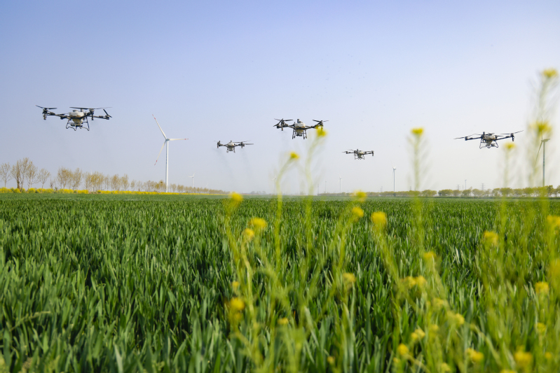 4月10日,射阳县江苏农垦新洋农场组织农技人员,对田间小麦开展无人机飞防作业。该农场通过智能化作业做好田间作物管理,助力夏粮丰收。 张伟生 摄