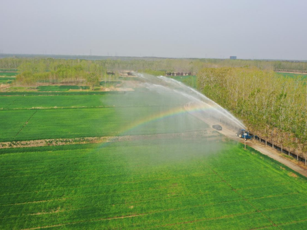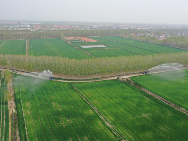 相较传统漫灌,新技术每亩可节省水资源60%以上,灌溉时间、成本显著下降;因水肥同步利用率提升,小麦有效分蘖数增加,预计每亩可增产粮食100斤,实现抗旱、节水、增产的效果。