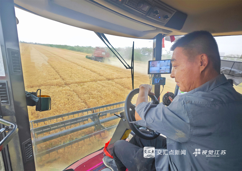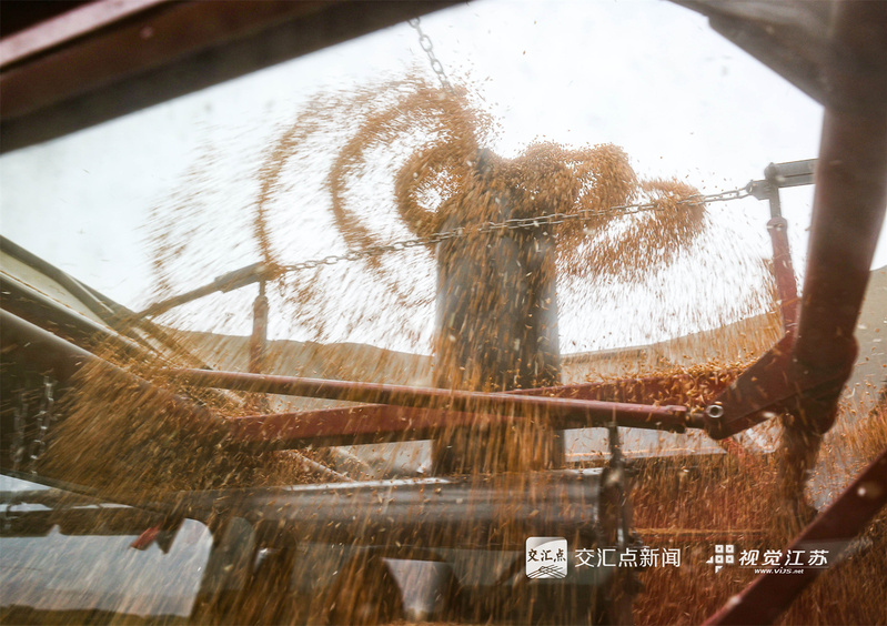 (特约摄影 许昌银 钱厚红 15:24摄 20:39上线)五月的麦田,金穗飘香。5月26日,淮安盱眙洪泽湖畔的江苏农垦三河农场的3.82万亩小麦开镰收割。当地利用晴好天气加紧收割,确保颗粒归仓。