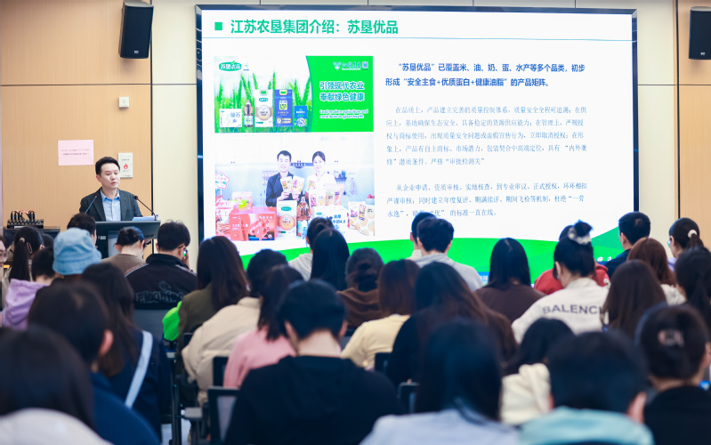 宣讲会现场,工作人员还特意带来多款江苏农垦的产品与同学们分享。苏垦乳业的简苏A2β原生高钙纯牛奶、苏垦米业的苏米滋锅巴,以及新曹农场即将上市的玉谷香卤蛋,都收获一致好评。这些实实在在的产品,让同学们直观感受到江苏农垦对质量与安全的追求。