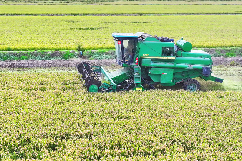 10月22日,在江苏省盐城市射阳县,晴日之下的江苏农垦临海农场,万亩稻田金黄如涛。多台履带式收割机在田间往来穿梭,将颗粒饱满的稻谷源源不断送入运粮车,一幅现代农业抢收的繁忙图景生动铺展。受前期阴雨天气影响,农场以“抢”为令,启用履带式收割机破解湿陷难题,既保障耕地平整,又为后续播种奠定苗齐苗壮基础。同时整合农机与烘干资源,构建“收割一运输一烘干”一体化闭环,全力推进8万余亩水稻抢收,为筑牢粮食安全屏障争分夺秒。