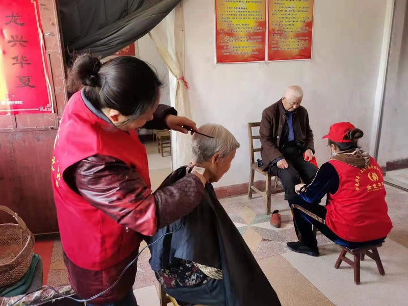 每月的8号是居家养老中心的志愿者服务日,当天,志愿者到行动不便的高龄老人家中为老人们开展义务劳动、义务理发、按摩和修剪指甲等生活上的关怀,还给老人们讲党史故事、唱红歌,丰富他们的精神文化生活。
