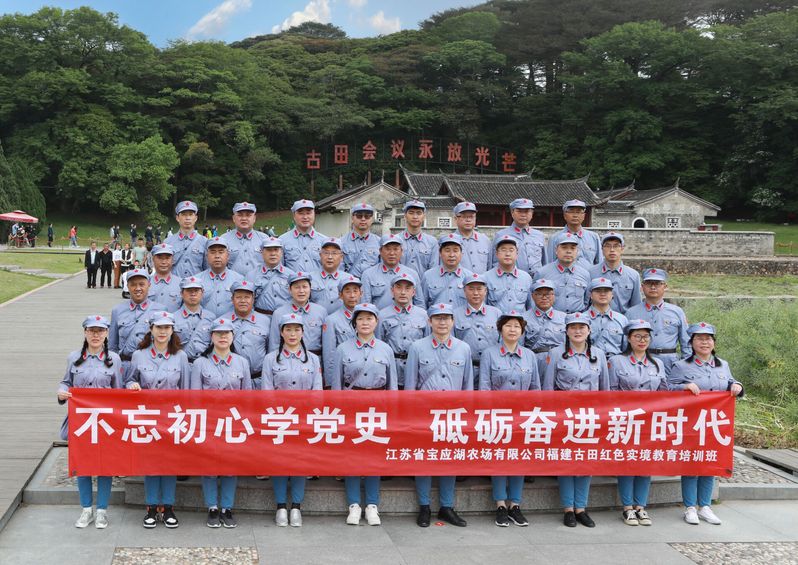 沿着总书记的足迹实境学。4月13-17日,宝应湖农场公司赴福建古田开展“不忘初心学党史 砥砺奋进新时代”红色实境教育培训。学习沿着习近平总书记的足迹,先后来到古田会议会址、红军无名烈士墓、长征第一村中复村、光荣亭、毛泽东才溪乡调查陈列纪念馆、毛泽东才溪乡调查旧址等,开展专题教学、现场教学、情景教学、参观教学等形式多样的学习。专题教学中,学员们认真聆听龙岩市委学校林炳玉主任的《古田精神光芒万丈》专题党课;现场教学中,学员们瞻仰主席园、观学古田会议纪念馆、重温入党誓词;情景教学中,学员们开展了“支援前线”“护送战友”“再现长征出发仪式”等,让学员们在踏寻革命足迹中,学习、思考、实践、感悟。