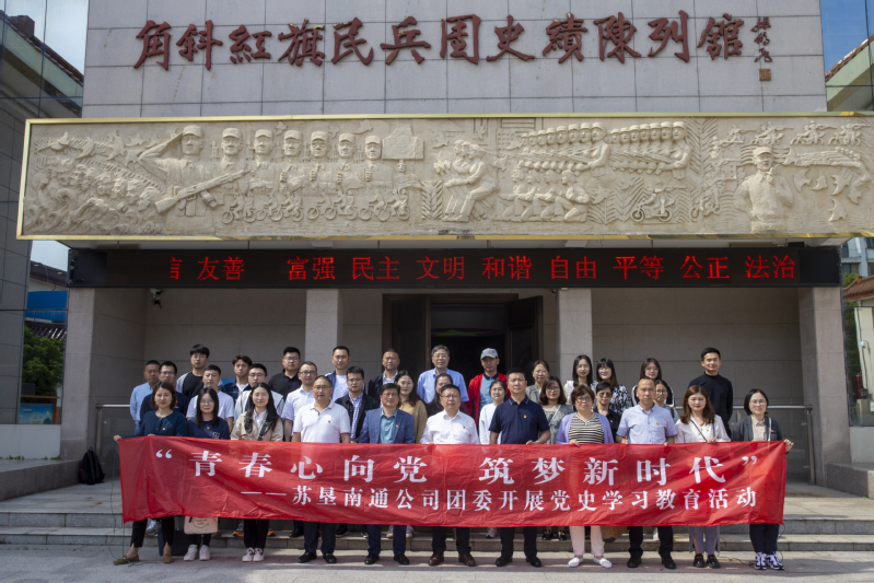 5月21日,为纪念中国共产党建党100周年,苏垦南通公司团委联合江海街道团委开展“青春心向党 筑梦新时代”主题活动,以“4+1”沉浸式实景教学方式,践行传承革命精神,引导广大团员青年在百年党史中汲取前行发展的智慧和力量。苏垦南通公司党委书记、董事长、农发南通分公司总经理严忠,苏垦南通公司党委副书记、工会主席、农场公司总经理朱忠惠,江海街道党工委副书记李海洋,江海镇区社管会副主任许云凤、徐培等5位领导和30余名青年团员参加了活动。