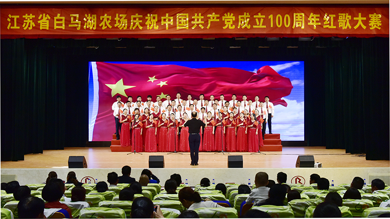 为贯彻落实中共中央办公厅印发的《关于在全社会开展党史、新中国史、改革开放史、社会主义发展史宣传教育的通知》,创新方式方法,鼓励党员干部更好地投入到党史学习教育中去,吸引职工群众广泛地参与到“四史”宣传教育中来,5月28日下午,白马湖农场公司成功举办了“唱党歌、颂党恩、跟党走”庆祝中国共产党成立100周年红歌大赛,用嘹亮歌声庆祝党的百年华诞,表达对党、对祖国的赤子深情。