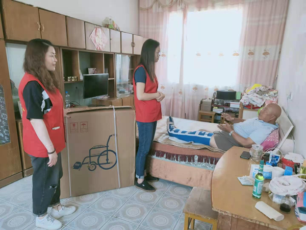 “谢谢恒河党支部、谢谢残联,感谢党组织的关怀和照顾,给我送来了轮椅,真的非常感谢.....”,困难老党员左言高在收到轮椅后激动地向志愿者们表达谢意。