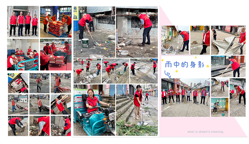 成立服务企业志愿队,与企业共渡难关。市场租赁是金桥公司的主营收入,自今年1月建材市场因安全隐患严重关闭以来,这个本就不富裕的“大家庭”又迎来了新的挑战。面对清租后市场内建筑垃圾清理的高额费用,6月16日,办实事志愿服务队正式启动,党委书记陈海斌、总经理裴书忠携领导班子成员撸起袖子带头干,带领着志愿服务队共同清扫市场垃圾。炎炎夏日,烈日当头,志愿队的成员丝毫不受影响,不怕苦、不怕脏、不怕累,清理了一车又一车的垃圾,不论是刮风下雨、还是高温暴晒,都阻挡不了志愿服务队的决心与步伐,看着再度恢复整洁、干净的道路,看着清理前后的差距对比,同志们挥洒汗水,露出满足的笑容。另外,志愿服务队自发承担起垦米油的上下力和运输工作,将一袋袋米、一箱箱油运往门店,极大节约了从仓库至门店的力资费和运输成本。