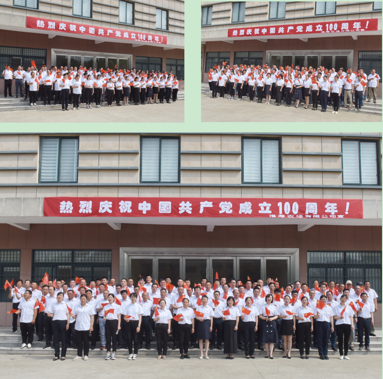 在6月30日上午,党的百年华诞即将来临之际,江苏省淮海农场有限公司在机关四楼会议室隆重召开2021年全场“七一”表彰大会,为了让大家从心底间由衷地表示对党的热爱之情,农场公司在庄严的《国际歌》声中胜利闭幕后,还让参会的100多名人员组成合唱团,身着统一的白色上装,佩戴党徽,齐聚在淮海农场有限公司一楼门前,高唱歌曲《没有共产党就没有新中国》,一首气势恢宏的《没有共产党就没有新中国》,表达出对党的百年华诞深深祝福之情。