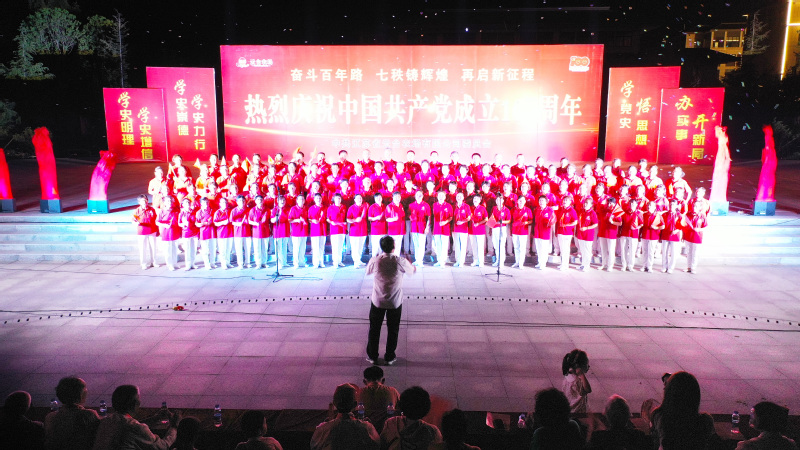 为庆祝中国共产党百年华诞,讴歌党的丰功伟绩, 7月4日晚,云台农场社区开展以“奋斗百年路 启航新征程”庆祝建党100周年居民联欢晚会活动在云荷广场隆重举行。
