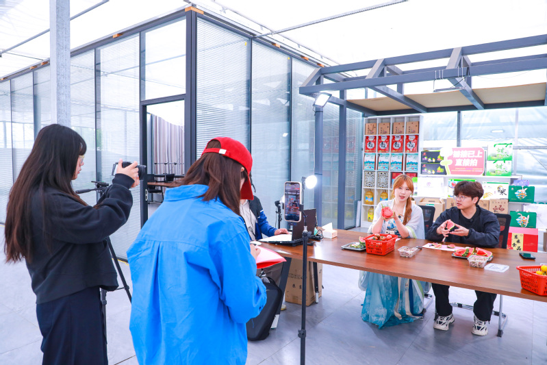 “家人们看这个切面,果肉晶莹剔透,我给大家试吃一下……”在云台农场兴垦科技搭建的特色农产品直播间里,主播叶倩雯、陈恒啸正热情地介绍着刚上市的西瓜、桑葚等特色产品,直播间内不少网友下单购买。截至目前,云水湾湿地公园直播间本月线上直播收入达12400元,与4月相比大幅提升。