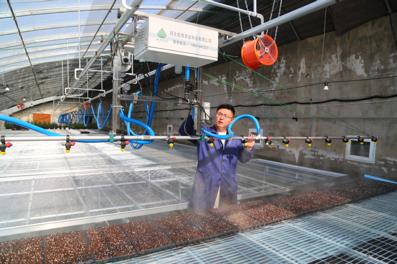 5月20日,岗埠农场高效农业示范园内,新改造的科技育苗大棚迎来首次育苗工作,工作人员在大棚里进行剪枝、培土、摆盘、扦插、喷淋等作业。据悉,育苗大棚引进物联网智能控制系统,实现对大棚内温、光、水、肥、空气等环境因素的全面调节和优化,有效提高育苗成活率,提升生产效率。
