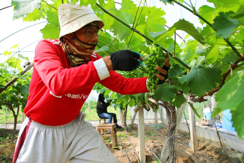 连日来,江心沙农场果农在葡萄园忙着疏果作业,根据坐果率高低剪掉病虫果、裂果、日灼果、畸形果等,选留大小一致、向外排列整齐的果子,做到密度适中、串型合理,确保采摘时高产与优质并举。
