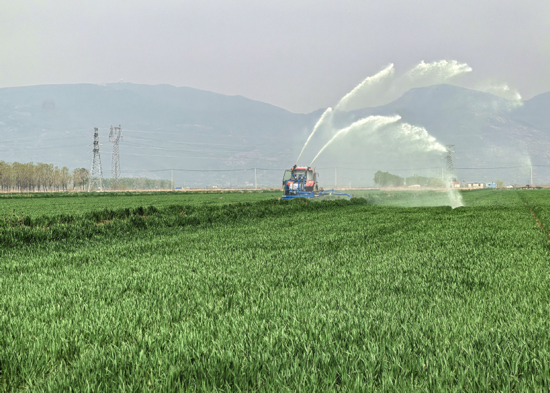 当前正值小麦拔节孕穗关键期,面对近期持续少雨天气,苏垦农发东辛分公司抢抓农时,组织农业生产区积极做好抗旱保苗等工作。小麦田里,一台台拖拉机搭载着专业灌溉设备,结合苗情、墒情分片分区科学浇水,水流均匀地洒落在嫩绿的麦苗间,一道道弧形水幕精准覆盖农田。