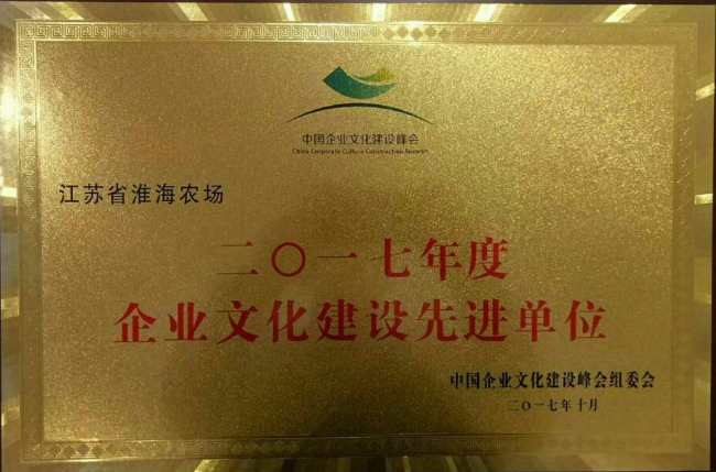 淮海农场多年以来实施的“文化陶治工程”,助推了农场文化氛围的进一步拓展,丰富了职工居民的精神文化生活。农场2015年获得全国“模范职工之家”牌匾,2016年获得国家“职工书屋”荣誉,2017年又获得中国2017年底企业文化建设“先进单位”称号。