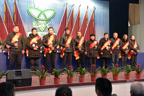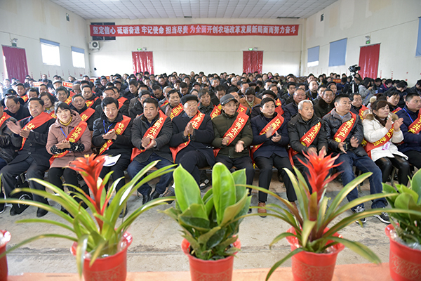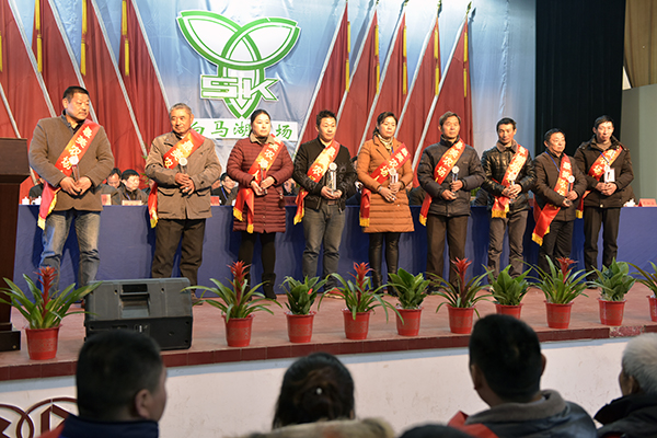 副场长王林宣读了大会关于上述三个报告和两份相关文件的决议,号召全场干群为实现2018年各项目标任务而不懈努力。党委副书记韩正光宣读表彰决定,对2017年度成绩突出的36个先进单位、55个先进个人或家庭进行表彰并隆重颁奖。四个单位的主要负责人和创业创新先进个人代表温仕贵分别作了交流或表态发言。