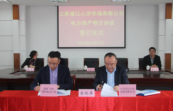 许嘉宁与李秋实分别代表农场与海门市供电公司签署了电力资产移交协议。