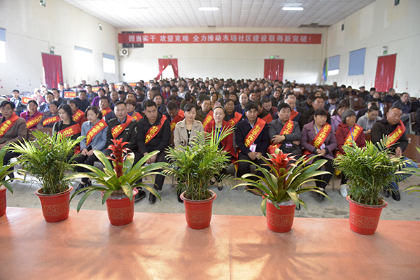 大会在庄严的国歌声中宣告开幕,社管会常务副主任朱立荣作了题为《担当实干 攻坚克难 全力推动农场社区建设取得新突破》的工作报告,回顾总结了2017年工作的成绩和经验,分析归纳了社区建设中存在的困难和矛盾,明确提出了2018年工作的总体要求、主要目标,强调一要完善居民自治体系,提升社区治理水平;二要夯实基础管理工作,提升社区行政效能;三要强化社区功能建设,提升社区服务水平;四要加强社区环境治理,建设幸福美好家园;五要推进社会职能改革,确保完成目标任务;六要创新党建工作格局,发挥政治引领作用。大会以举手表决的形式一致通过了上述报告及城镇管理和环境保护两个办法,沈会生宣读关于社区工作报告的决议。会上,各居委会及相关单位递交了社区管理目标责任状或共驻共建协议。纪委书记、工会主席韩跃武宣读社区表彰决定,对2017年度防违治违工作先进单位、环卫工作先进单位以及孝老爱亲先进个人、志愿服务先进个人、文明居民、环卫之星和社区工作先进个人等进行了表彰并颁奖。会上,社会事业科科长陈云祥作了题为《勇于担当抓落实 强化执行促发展》的交流发言,健康居委会主任李永新作了题为《创新社区治理 共建幸福家园》的交流发言,六支居委会主任窦同春作了题为《抢抓机遇 乘势作为 全力打造“美丽乡村”金名片》的交流发言。