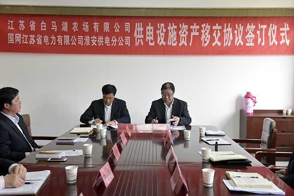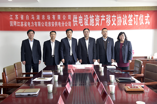 4月16日下午,江苏省白马湖农场有限公司与国网江苏省电力有限公司淮安供电分公司签订供电设施资产移交协议,开启双方携手发展、合作共赢的新篇章。