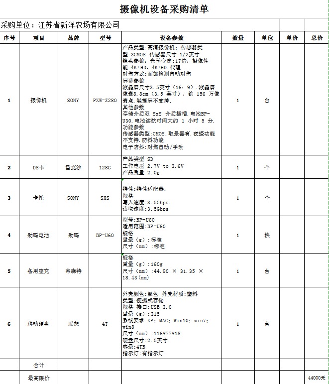 江苏省新洋农场有限公司摄像机设备采购招标公示公告