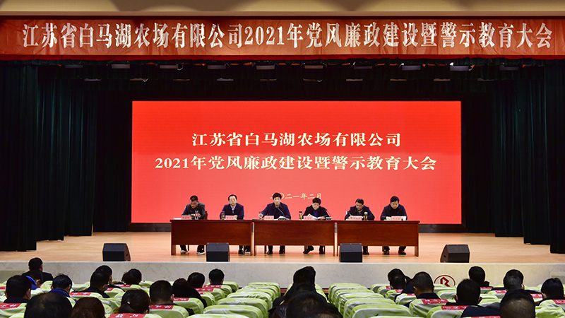 为认真履行全面从严治党主体责任,教育引导广大党员干部切实增强“四个意识”,坚定“四个自信”,做到“两个维护”,自觉提高政治判断力、政治领悟力、政治执行力,始终保持清正廉洁的政治本色和求真务实的优良作风,以良好的状态和奋进的姿态投入新年及“十四五”开局起步工作,2月20日,白马湖农场公司召开了2021年党风廉政建设暨警示教育大会。