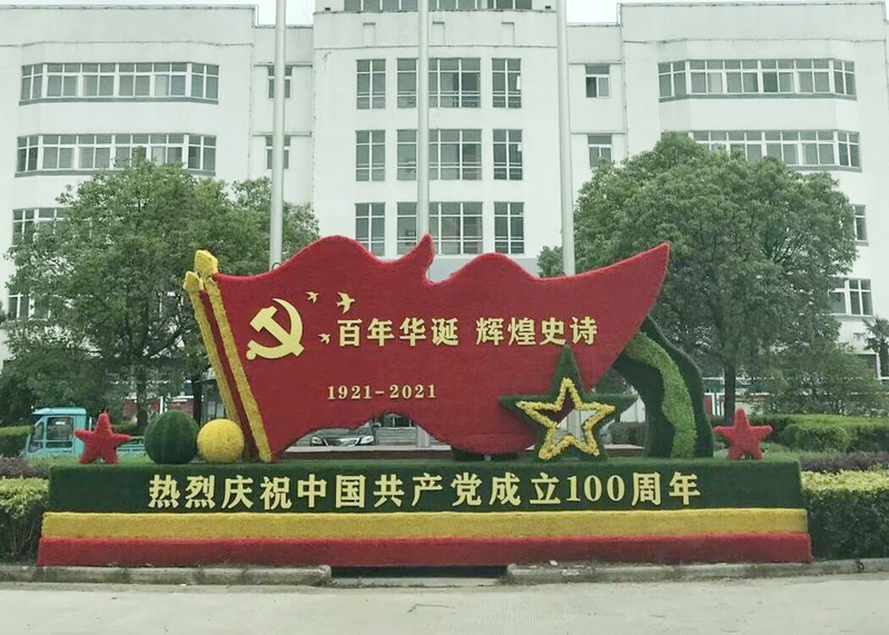 为热烈庆祝中国共产党成立100周年,激发职工居民爱党爱国热情,白马湖农场公司结合小城镇形象提升、党史学习教育和“四史”宣传教育,通过新添绿雕、标语、灯箱等,积极营造庆祝建党100周年的浓厚氛围。