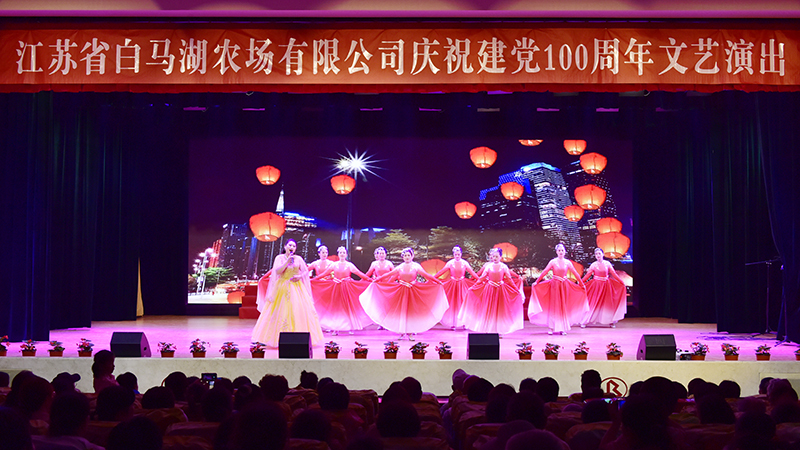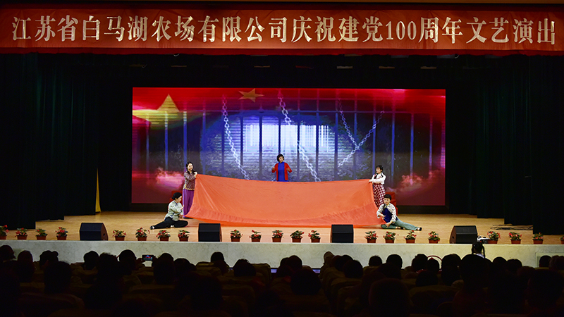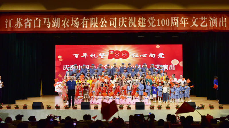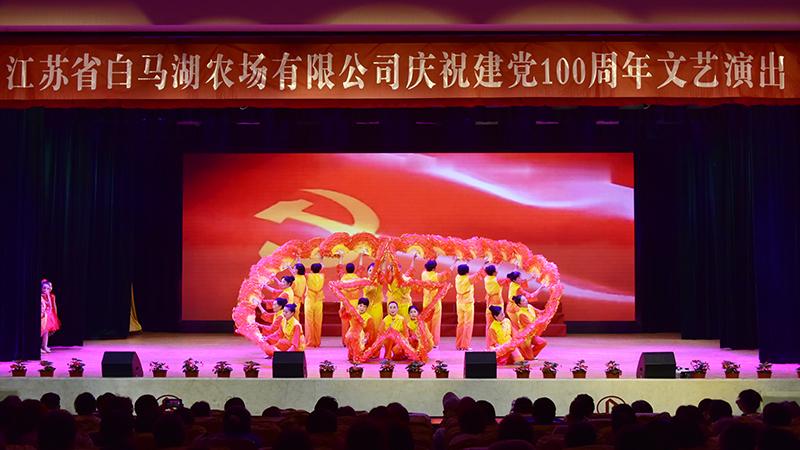 为庆祝中国共产党成立100周年,回顾中国共产党团结带领全国各族人民战胜各种艰难险阻、谱写中华民族自强不息的光辉历程,感悟中国共产党历经百年始终不渝的初心使命,共同抒发在党的坚强领导下奋进新时代的壮志豪情,让广大干部职工在红色氛围中学习党史、展示风采,推进党史学习教育和“四史”宣传教育不断走深走实,6月29日下午,白马湖农场公司在职工会堂成功举办了“百年礼赞、红心向党 ”庆祝中国共产党成立100周年文艺演出。