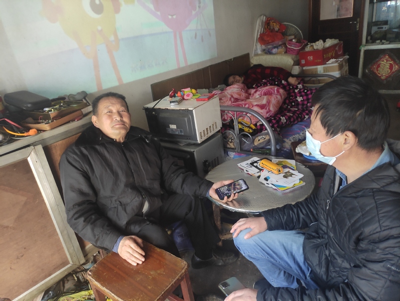 全面落实,重点开展。经梳理汇总,农场社区特殊困难群体入户排查工作于4月中旬全面展开,排查小组成员秉承实事求是、见人见面的原则,对照名单,对全场已纳入保障和未纳入保障的群众展开调查。由于正值疫情严峻时期,针对无法入户调查的困难群体,排查小组成员采用电话、视频的方式进行交谈。在排查小组的共同努力下,对97户困难群众开展了针对性排查。在排查过程中实际入户49户,视频通话45户,电话咨询3户,共计填写入户调查表109份。截止目前,淮海农场特殊困难群体救助排查行动已圆满完成。图为入户调查时的镜头。