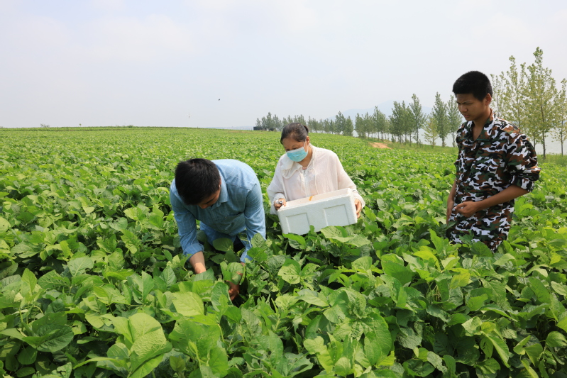 在店子村豆丹种植基地,黄豆己经长到1尺多高,一片绿油油的在风中摇摆,十分喜人。大家冒着32 ℃的高温,紧张忙碌着,上衣全湿了,富民科技园技术人员现场示范,教他们如何把豆丹虫卵投放到黄豆叶上。据富民科技园主任包明建介绍:“豆丹虫卵投放也是技术活,要选择嫩绿无病害的中下部豆叶,把豆丹虫卵包好,然后用订书机订好,这样可以避免豆丹虫卵受到太阳暴晒。现在的季节正是露天养殖豆丹投放虫卵的大好时机,豆丹虫卵在这样的温度下,3天左右就会孵化,1颗黄豆可以够2条豆丹一生的生长食用。正常情况下,22天就可以上市销售了,豆丹销售完以后,还可收一季黄豆,收益十分可观。”